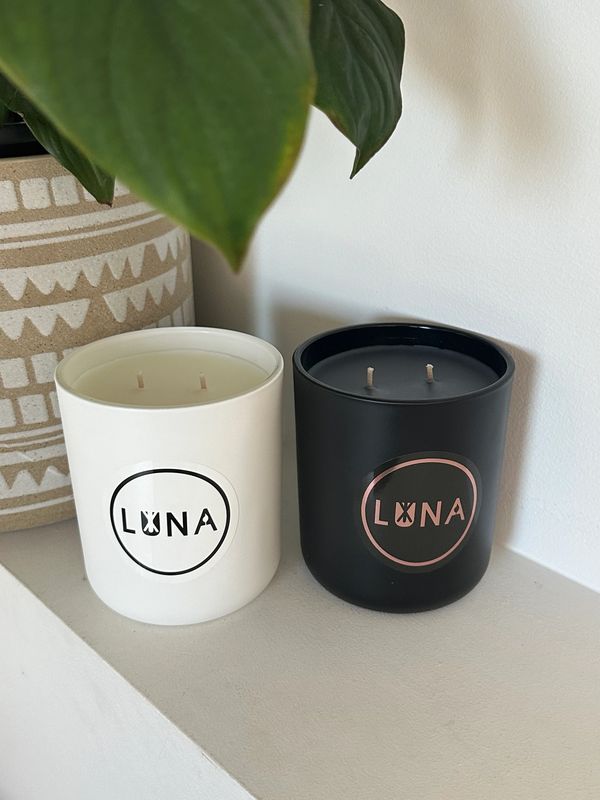Luna's large candles burn for approximately 63 hours. They are double wicked candles that are filled with 400g of beautiful soy wax and fragrance.